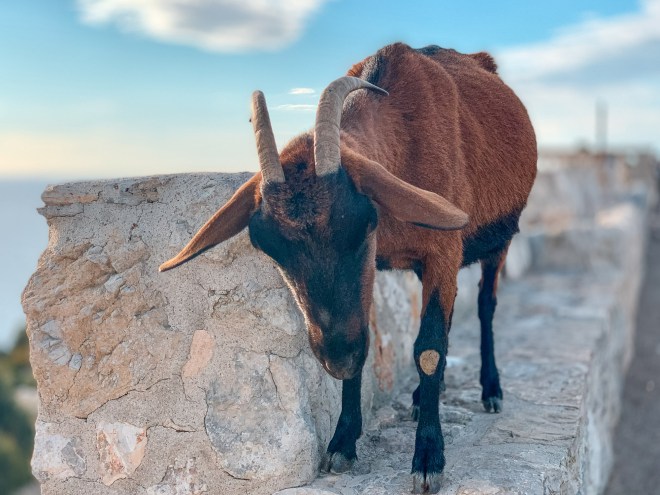 After an hour of walking, the mountains opened up to the secluded cove. We were awe-struck by the calm water and sapphire waves reflecting in the sun. As we sat down to enjoy the views and some lunch, a mountain goat greeted us. The goat was so close to our faces and ready to take a bite of our sandwich! We laughed after he walked away and could hear the rest of his flock “Baaing” in the distance. We made our way back towards the car and absorbed the remainder of our favorite hike in Europe.